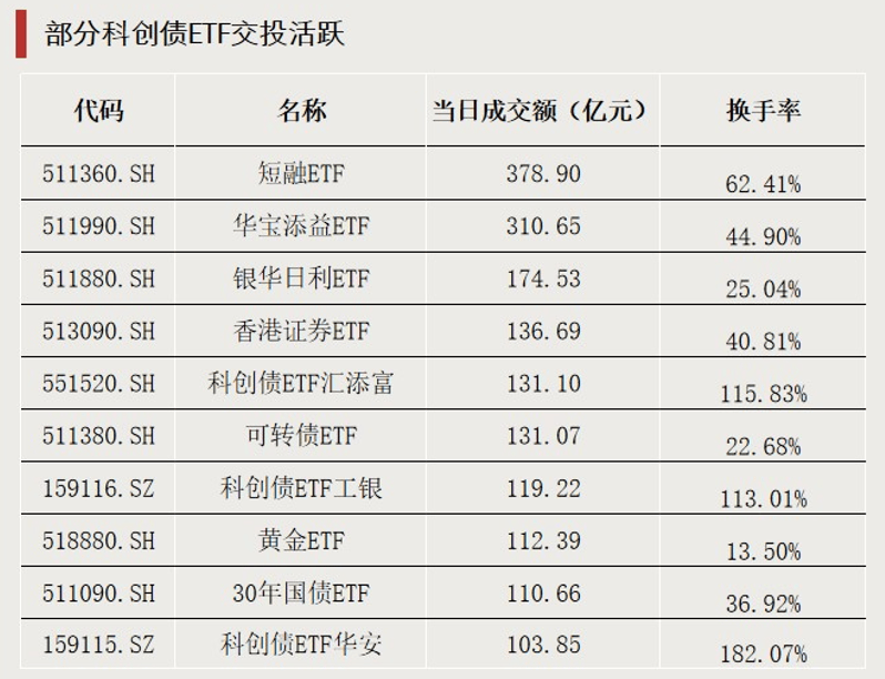 短融ETF(511360)10月20日成交额高达378.90亿元,位居全市场ETF成交额之首。三只科创债ETF交投活跃,成交额均超100亿元。