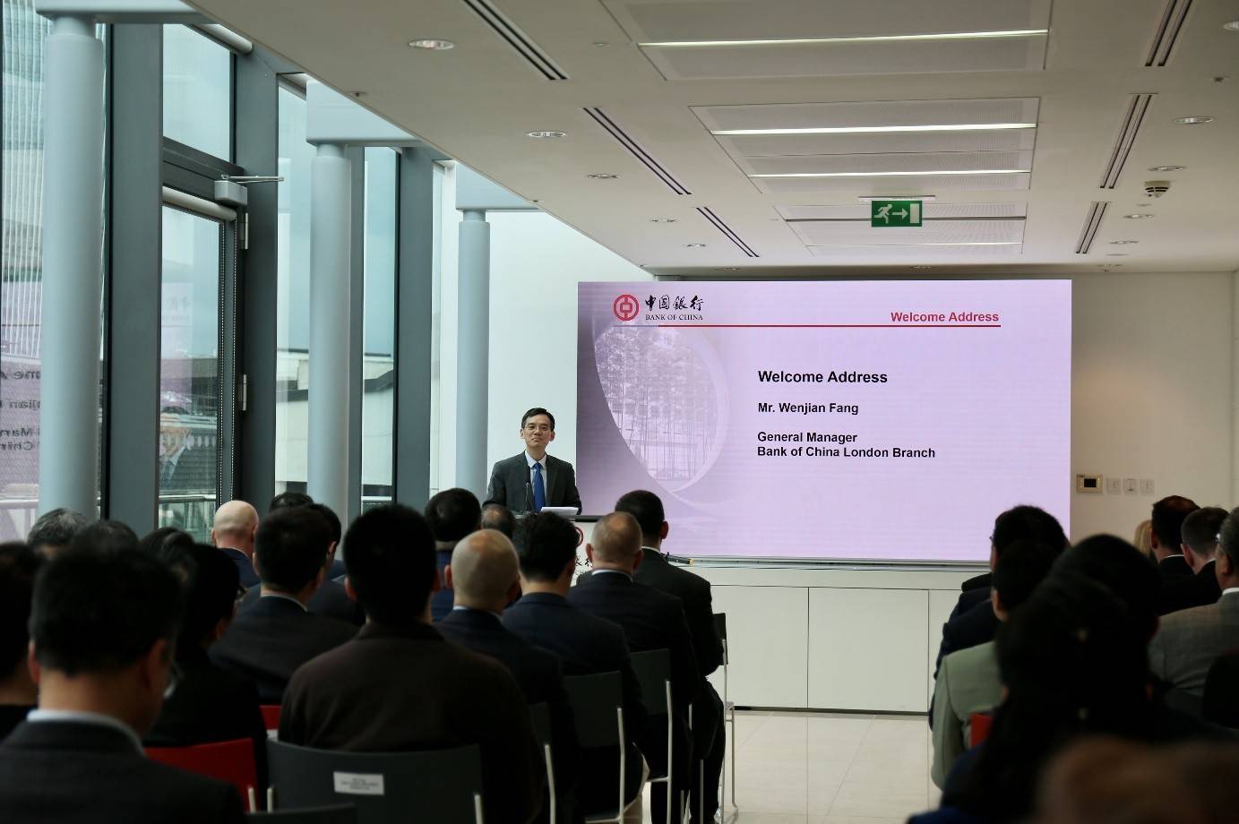 中国银行伦敦分行行长方文建致欢迎辞。主办方供图