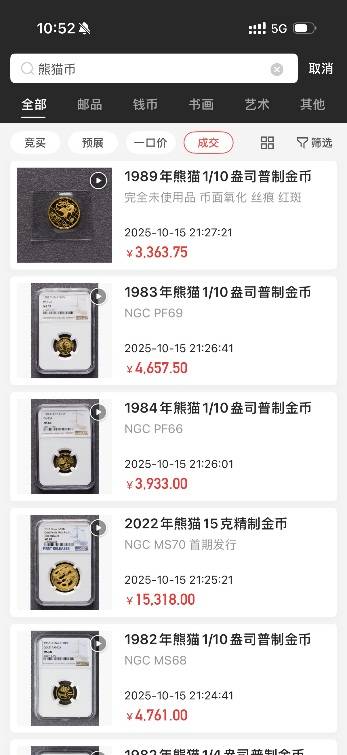 从具体成交数据来看,02年的老金猫折合金价达931元/克,较当时国际金价溢价超12%;2000年的老金猫成交品折合金价931元/克,较市价溢价20%;92年的老金猫则以905元/克的折算价实现9%的溢价。这一系列数据背后,体现的是熊猫金币独特的价值逻辑。