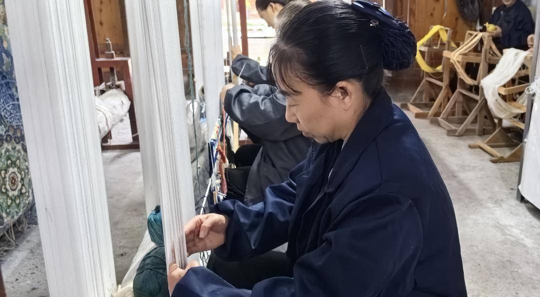 如今,“则天牌”手工真丝地(挂)毯获“四川省著名商标”和“天府旅游名品”荣誉。在歧坪真丝地(挂)毯工坊,200多名工人中90%是当地妇女,何秀会便是其中一员:“跟着刘师傅学织毯,每月能挣3000多块,还能照顾家里,日子踏实安稳。”刘华望着车间里忙碌的身影,语气格外坚定:“我常跟徒弟们说,守手艺不只是守老规矩,更要让手艺‘活’起来。”