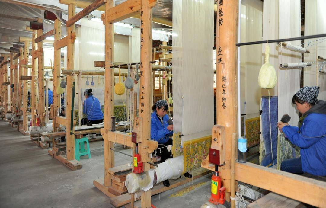 1994年乡镇企业改制,负债累累的地毯厂面临解散。“手艺不能断!”刘华咬牙四处借钱,负债接下厂子。“当时亲戚朋友都劝我,‘这活又苦又不挣钱,图啥?’可一想起爷爷奶奶织毯时的模样,就觉得这手艺‘长’在血脉里,丢不得。”他注册成立丝毯厂,身兼厂长与总技师,一边带头扎进车间搞生产,一边跑市场、拓订单、更新技术,硬生生撑起了濒临倒闭的厂子。那时的他只有一个信念:“不管多难,都要把这门手艺守住。”