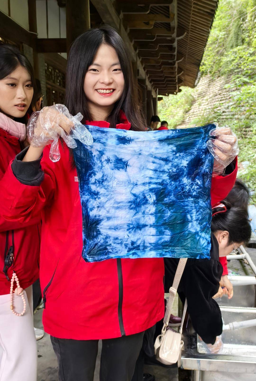 大学生陈娇艳现场学习制作的扎染作品。刘彦谷摄