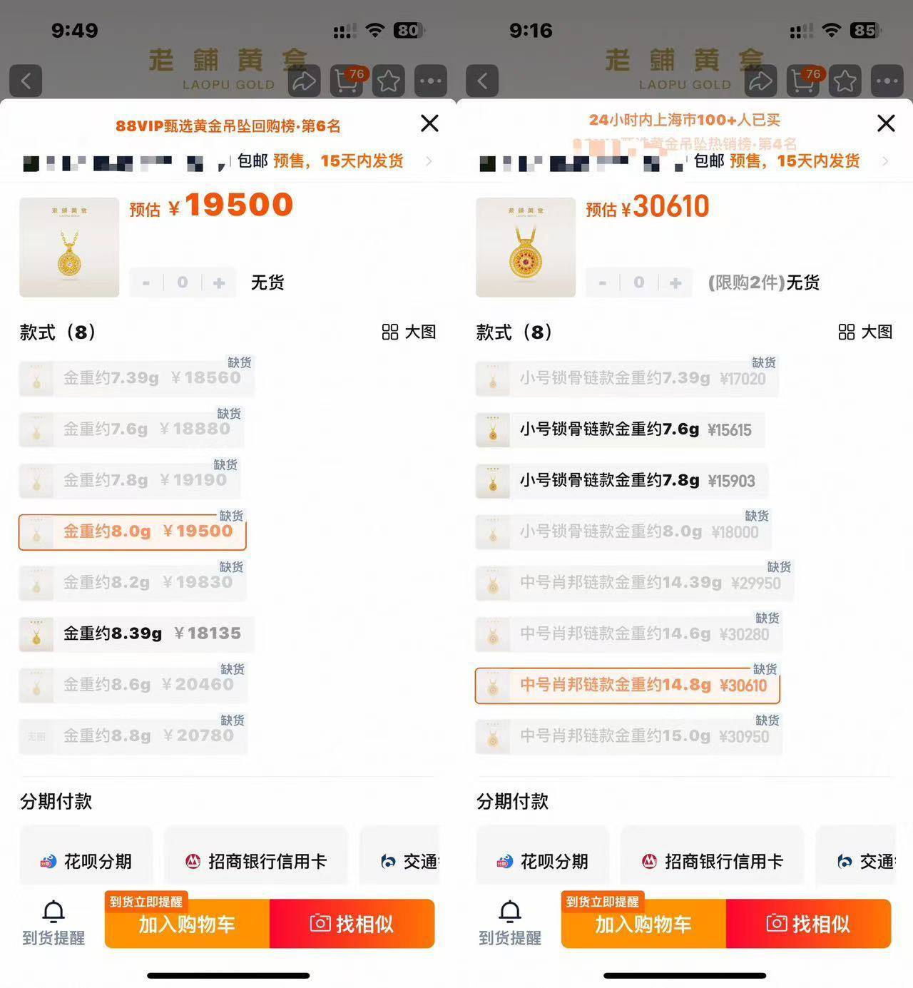 蓝鲸新闻10月26日讯(记者 郝妍 汤诗韵)10月26日,老铺黄金此前宣布的年内第三次调价正式兑现。相较今年8月时产品5%-13%的涨幅,本次老铺黄金多款产品涨幅超20%,加价力度不小。