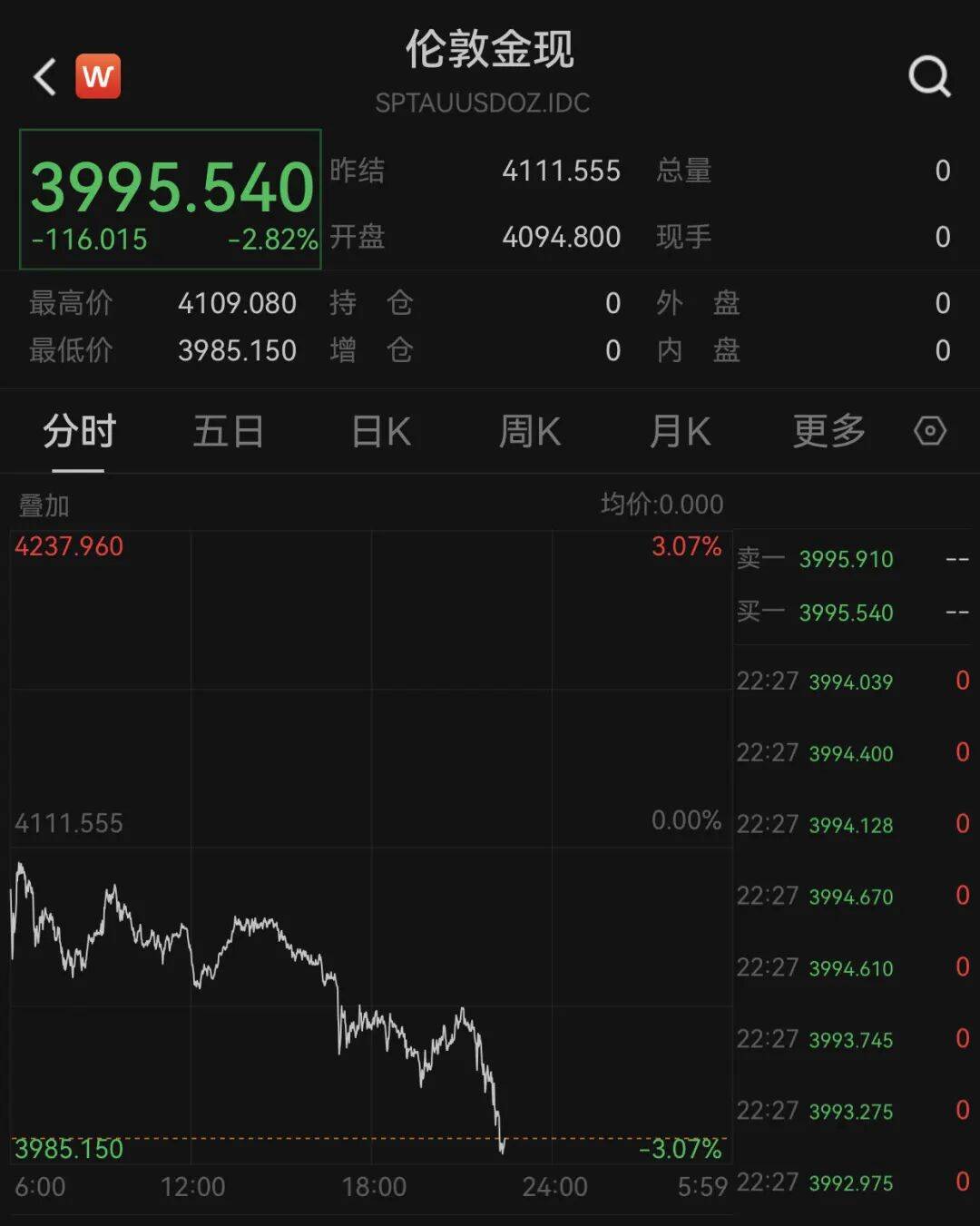 此外,黄金跳水,截至发稿,伦敦金现、COMEX黄金均跌近3%,其中伦敦金现跌破4000美元/盎司。