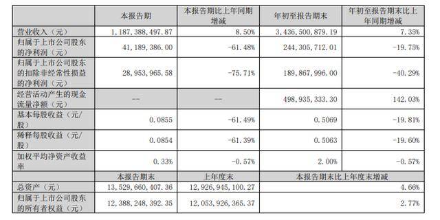 10月27日,北京君正(300223.SZ)公告称,第三季度营收为11.87亿元,同比增长8.50%;净利润为4118.94万元,同比下降61.48%。前三季度营收为34.37亿元,同比增长7.35%;净利润为2.44亿元,同比下降19.75%。