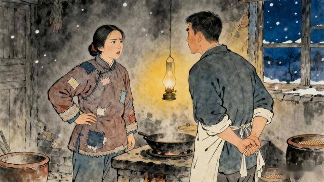 阿磊本就憋着火,听媳妇这么说,气冲冲地往东家院里去。没半个时辰,还真拎回二斤白面、二斤五花肉,脸上的怒气也消了大半。