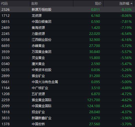 港股的有色金属同样跌跌不休,中国白银集团跌超7%,江西铜业股份、赤峰黄金、潼关黄金等纷纷下跌。