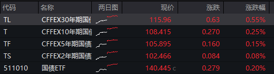 债市:国债期货全线反弹,截至收盘,30年期主力合约涨0.55%,10年期主力合约涨0.25%,5年期主力合约涨0.15%,2年期主力合约涨0.08%。
