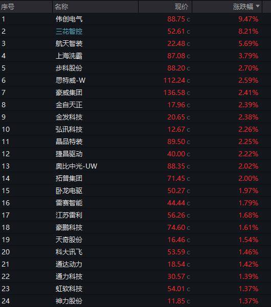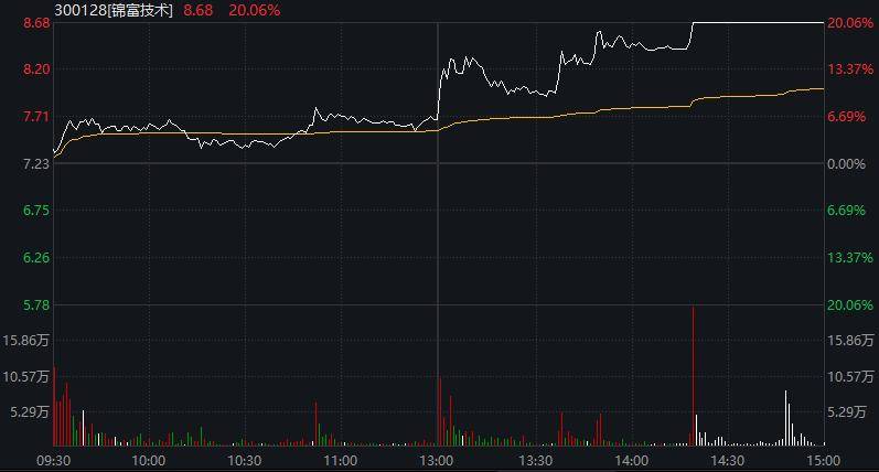 午后机器人概念再度拉升,锦富技术直线封板,录得20%涨停三花智控触及涨停,再创历史新高,股价最高达53.48元/股。永茂泰、方正电机涨停,万向钱潮、富临精工、中坚科技、拓普集团等纷纷跟涨。