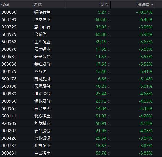 受到国际黄金持续下跌,最低跌至3920美元附近影响,A股和港股的有色金属板块普遍下跌。截至收盘,A股基本金属板块收跌1.8%,板块内,铜陵有色跌停,华友钴业、汇丰钻石、江西铜业等跌幅居前。