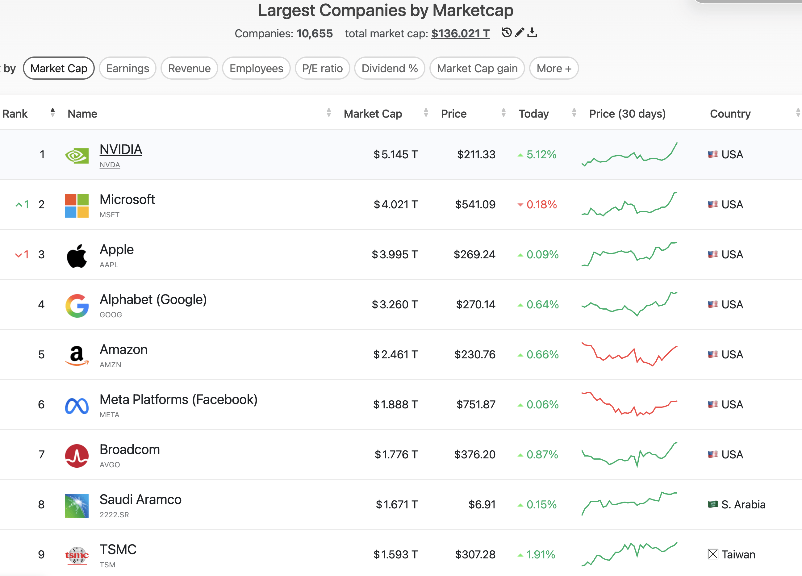 英伟达,在成为唯一一家靠创始人带队冲进3万亿美元市值俱乐部的上市公司后,又在今年下半年相继成为“全球首家4万亿美元上市公司”、“全球首家5万亿美元上市公司”。
