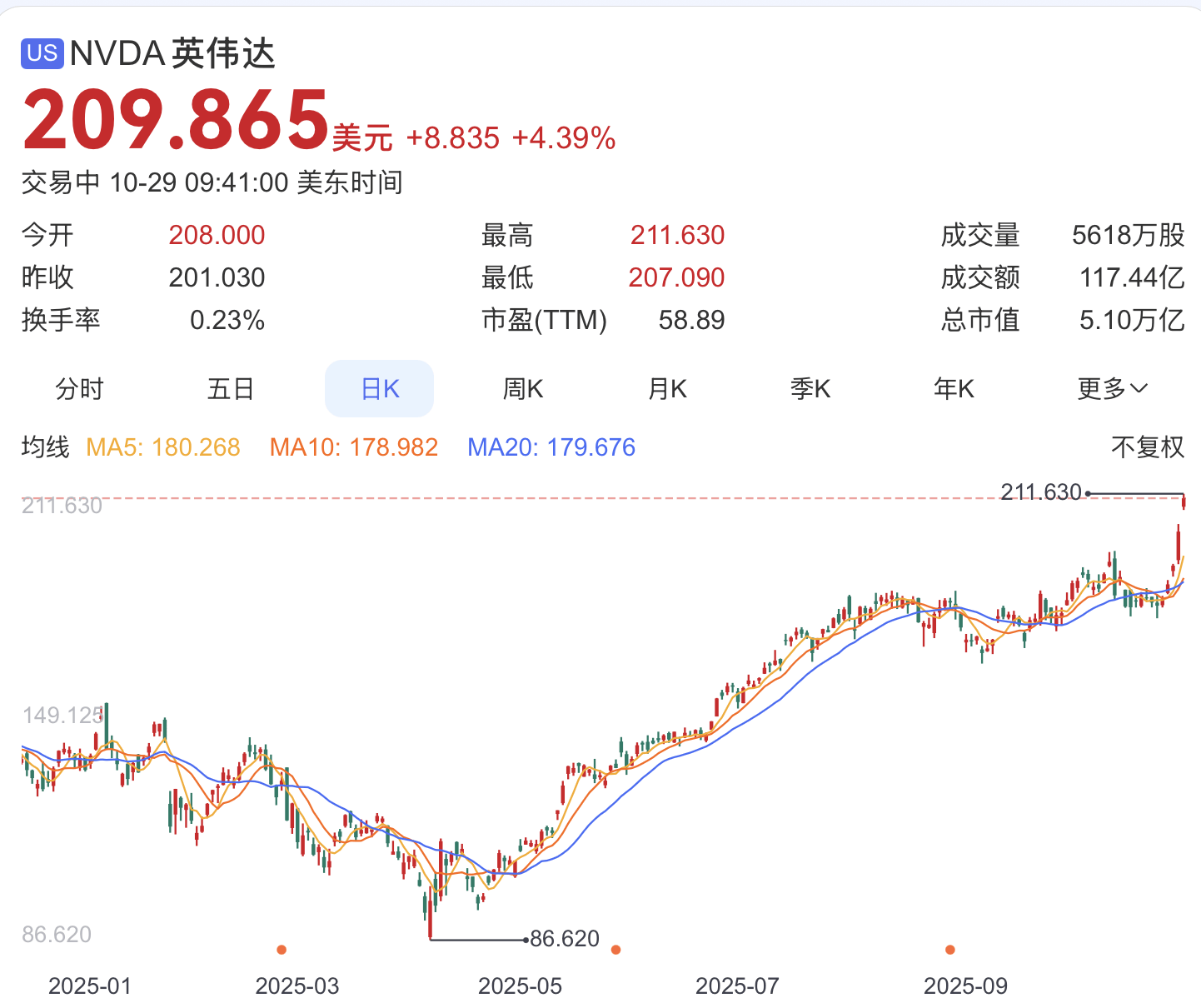 智东西10月29日报道,刚刚,英伟达市值正式突破5万亿美元大关!这标志全球股市的新里程碑——我们见证了史上第一家5万亿美元上市公司的诞生。