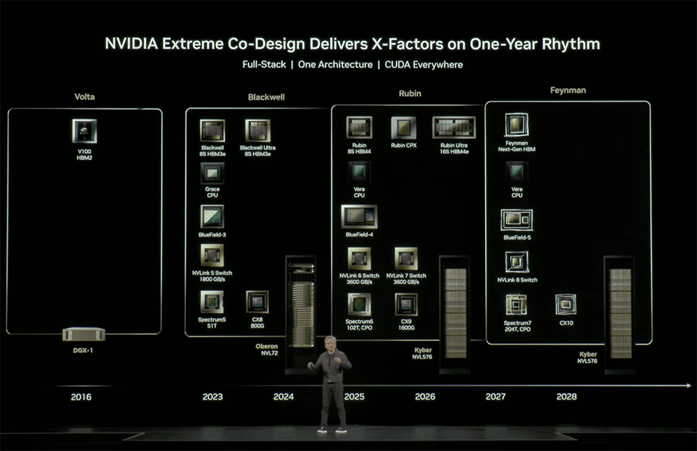 今日,英伟达在GTC大会上公布其五大芯片路线图,全面展示对数据中心算力基础设施的前瞻布局和强大的产品实力。()