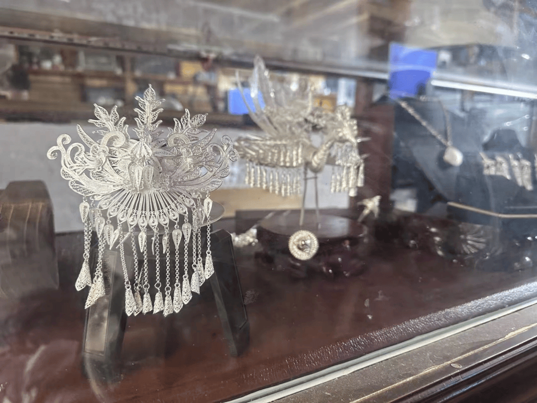 王国武是苗族银饰锻造技艺的非遗代表性传承人,他从16岁起跟随父亲学习银饰制作,不仅熟练掌握“拉丝”“錾刻”功夫,还在贵州黔东南丹寨商业街经营着一家名为苗韵银饰的小工坊。近年来,随着原材料涨价、订单不稳定、资金周转困难等问题,这个小工坊的经营一度陷入困境。“想扩大生产,缺资金;想收徒传艺,又怕养不活大家。”王国武说,自己好几次都想过放弃。