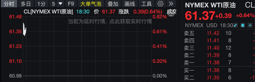 11月3日,WTI原油跳空高开,最新报61.37美元/桶,涨幅为0.64%。消息面上,欧佩克决定12月增产但明年第一季度暂停增产。
