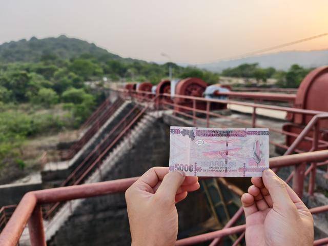 这是5000几内亚法郎纸币背面的金康水电站图案。
