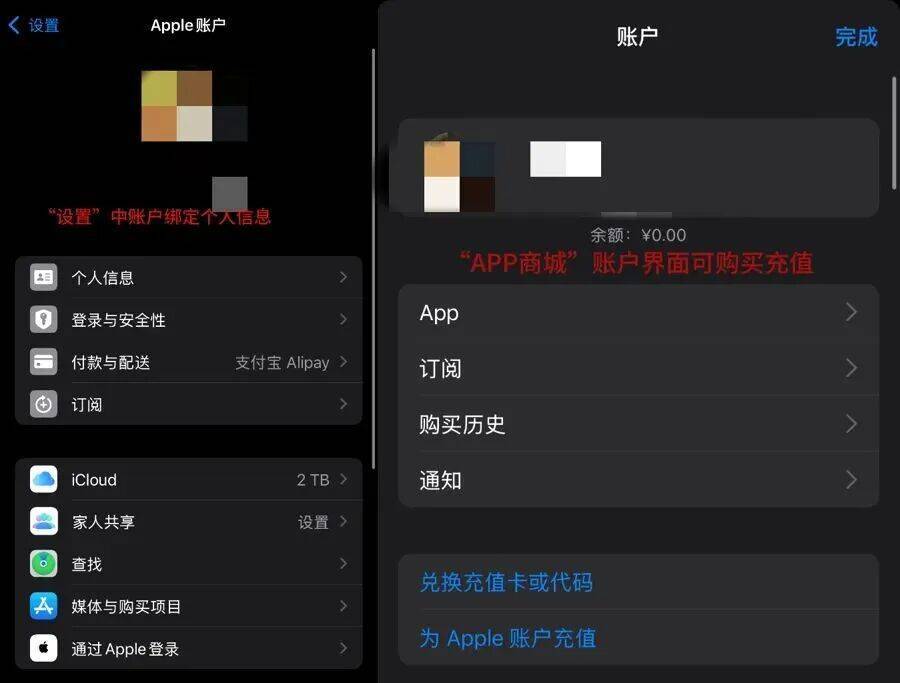 苹果“APP商城”看不到账户信息,但可以执行购买充值等操作