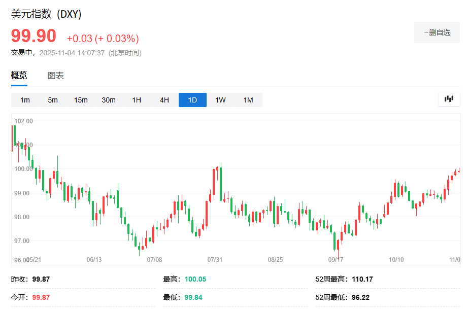 美元指数涨0.03%,报99.90;澳元/美元跌0.4%,报0.6513;