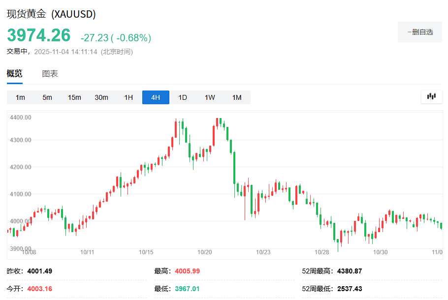 在美元走强之际,叠加全球风险资产承压,大宗商品全线走低,现货黄金连续三个交易日下跌,目前再度回落至3970美元附近。