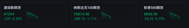 标普500指数期货跌0.8%,纳指100指数期货跌1.1%;