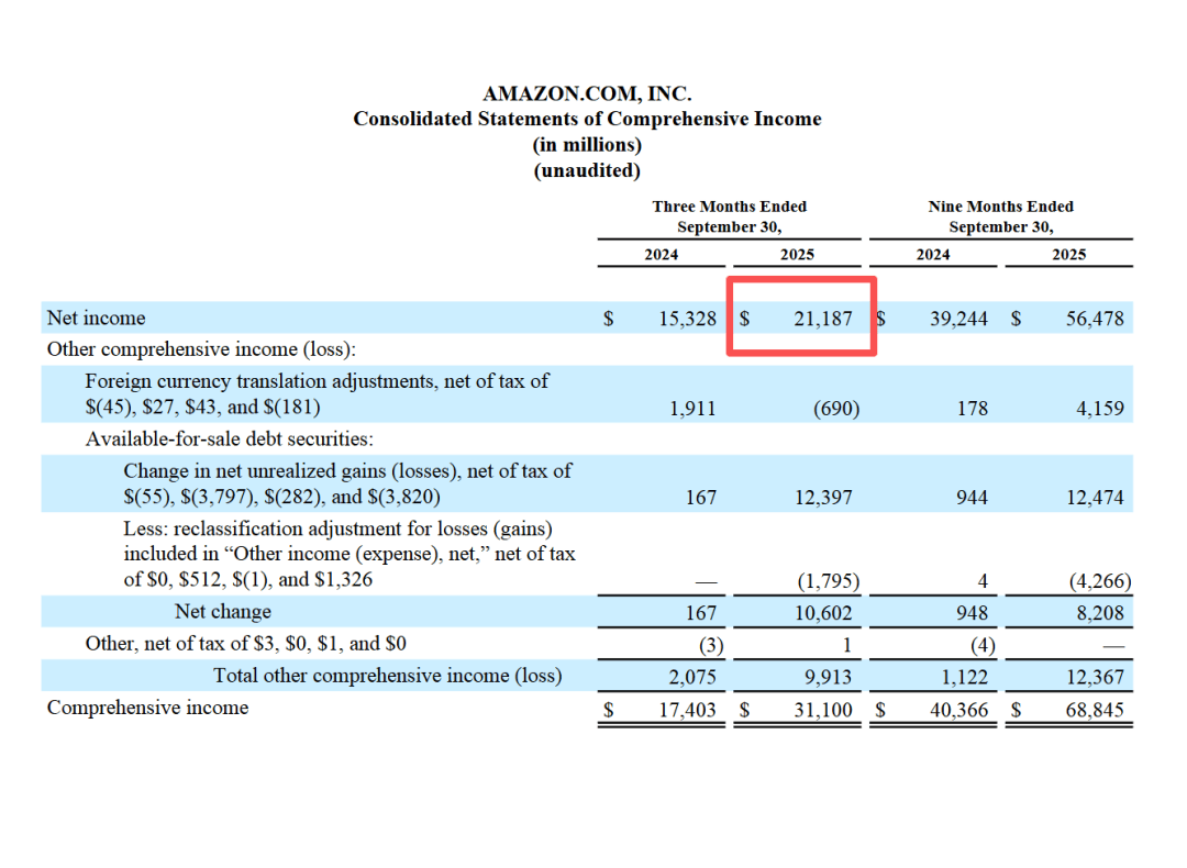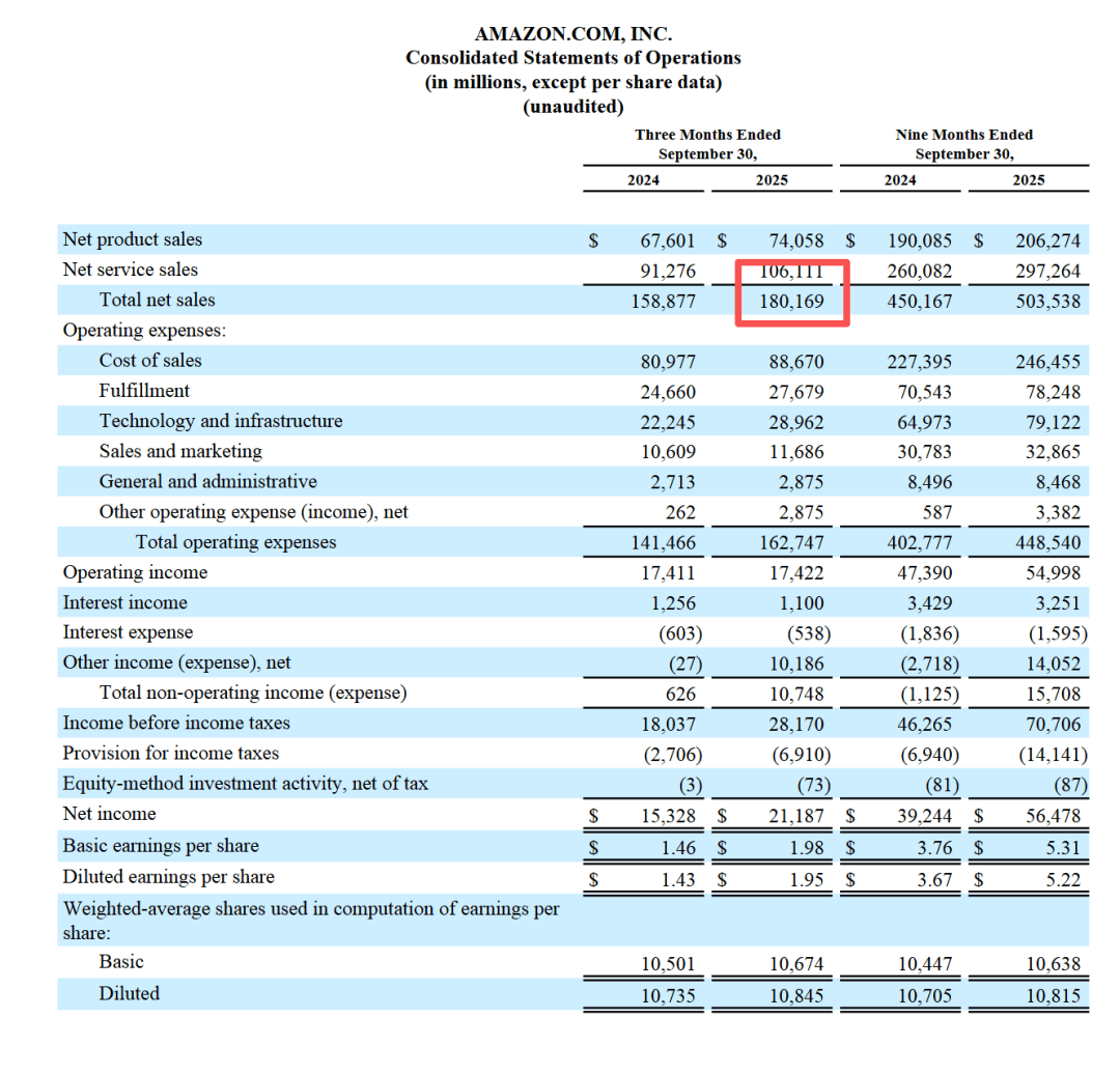 就在这场“算税潮”发酵的同时,另一边的亚马逊正在算另一笔账:公布2025年第三季度财报,用AI、广告和云计算,把增长重新定义了一遍。