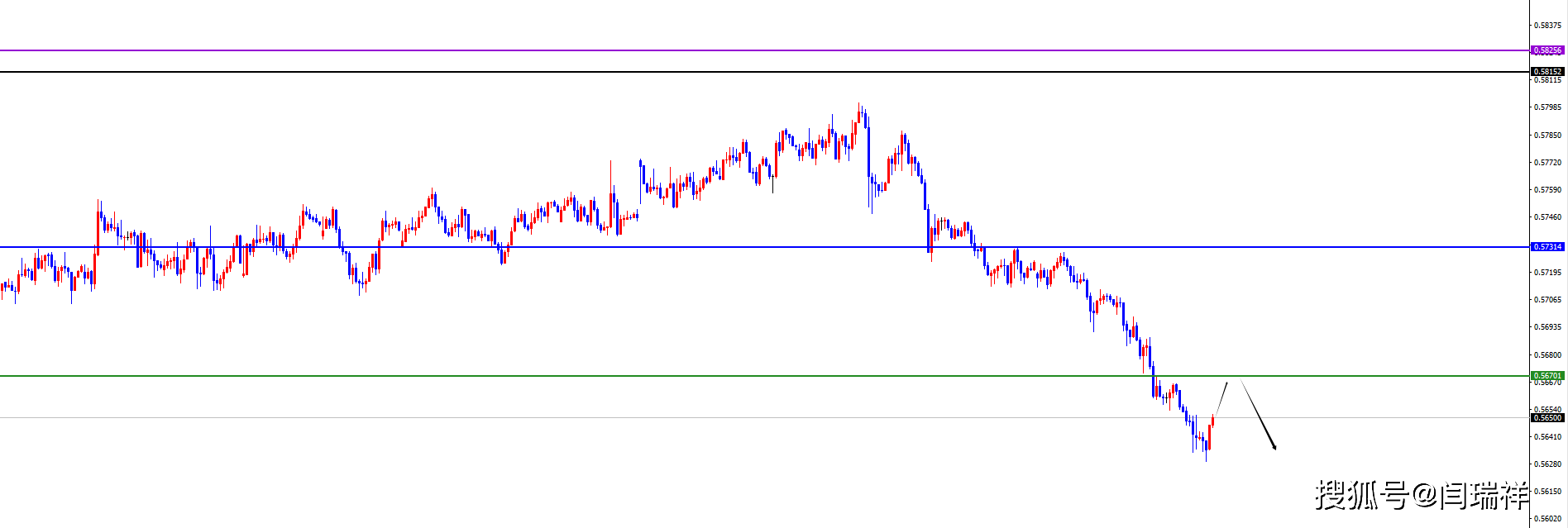 关键分水岭0.5700位置,价格上破之前维持空对待