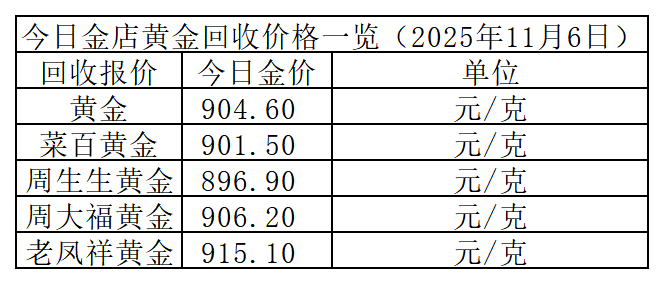 另外,今日黄金回收价格重新上涨6.1元/克。不同品牌回收价差较大,以下为部分金店回收参考价: