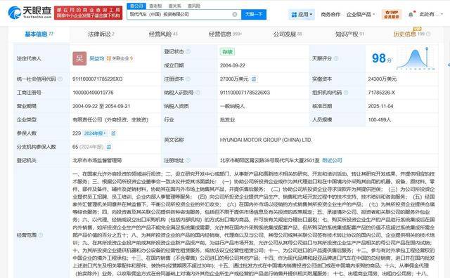 该公司成立于2004年9月,法定代表人为吴益均,经营范围含在国家允许外商投资的领域进行投资,设立研究开发中心或部门,从事新产品和高新技术相关的研究、开发和培训活动,转让其研究开发成果,并提供相应的技术服务等。股东信息显示,该公司由起亚株式会社、现代自动车株式会社共同持股。