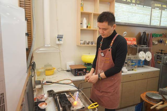 在蒋建东的店里,顾客大多会选择当面看着打金,一位正在等手镯的女士说:“在这里打金能全程盯着,不用担心被换金、偷金,心里踏实。”