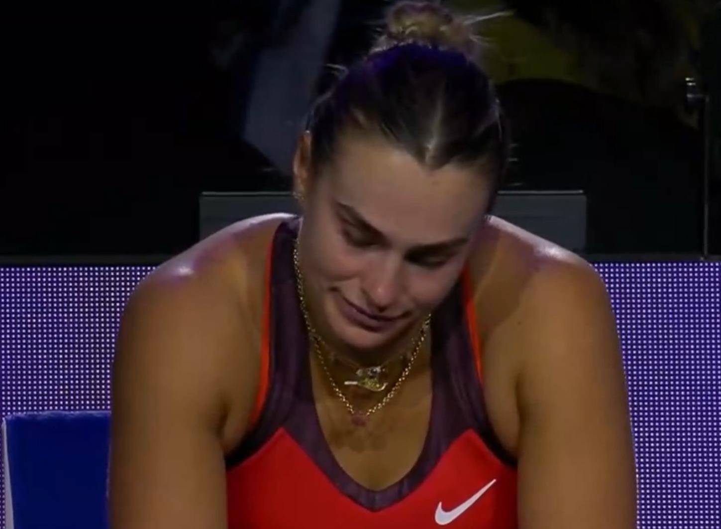 比赛结束后,萨巴伦卡的脸上写满了落寞。在颁奖仪式上,率性的“虎妞”一度强忍泪水。不过她仍笑着祝贺了莱巴金娜,她自己的团队也齐齐向她比心。