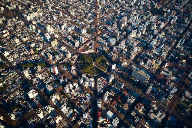拉普拉塔完全是现代国家意志的产物,从零开始精心绘制而成。这里是国家的现代化实验田,也是世界城市规划史上罕见的“格子范本”。放眼俯瞰,它是一块被严格切割的棋盘,城市以莫雷诺广场为中心,每六个街区便有一座广场,轴线清晰,节点分明。这种仿若几何模型般的城市结构,在今天依然保有惊人的完整性。
