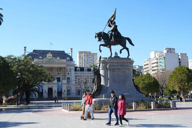 沿着十字分明的街道漫步,白色立柱、灰蓝色屋顶的官署与博物馆次第出现。建筑分列主干道两侧,遥遥相望。圣马丁广场中央,骑马的将军塑像高举旗帜,似在守护这片秩序井然的拉美土地。