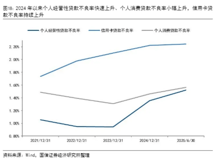 而且,让大家比较意外的是,现在不仅仅是住房不良贷款越来越多。 银行的信用卡不良贷款,也就是个人消费这一块的不良贷款在攀升。