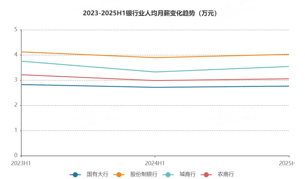当然这些都是网友爆料,我从半年报中看了一下银行业人均月薪的变动趋势,人均薪资较去年有所回升,但是拿2023年数据来看,还是薪资水平还是减少了。跟2024年相比,约一半银行人均薪酬上升,另一半则出现下降。