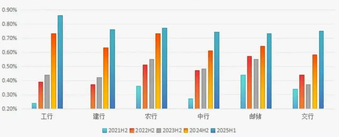 其中房贷占比最大,各大行的房贷不良贷款率的变化, 基本都已经翻了三倍了。