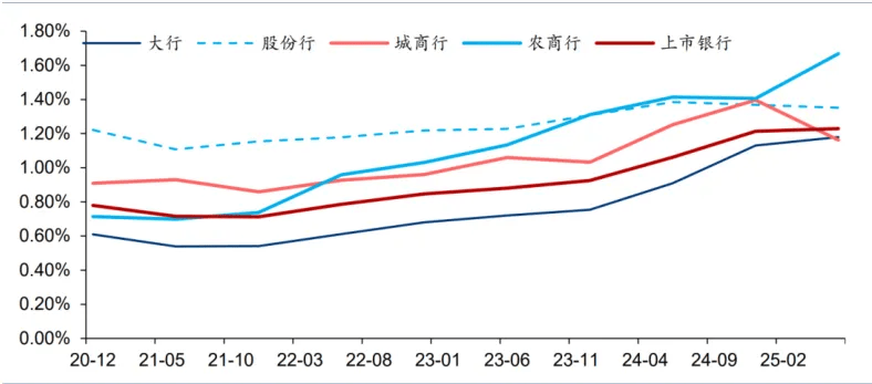 虽然净息差和不良贷款率这两个比率分母不同,净息差和不良贷款率出现倒挂,不能简单说赚得钱覆盖不了坏账了。但也意味着信用成本在不断攀升,赚的钱减去信用成本后,之后可能没剩多少钱了。