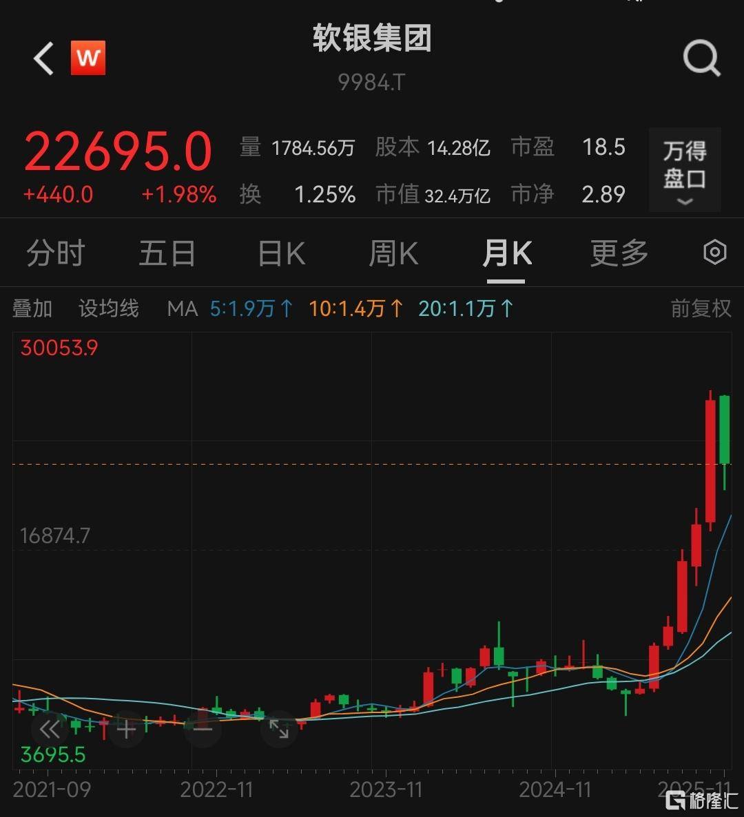 这些持仓所带来的账面收益推动软银股价狂飙,自4月以来,其股价从5700日元/股的低点一路飙升至27695日元/股,期间累计涨幅超270%。