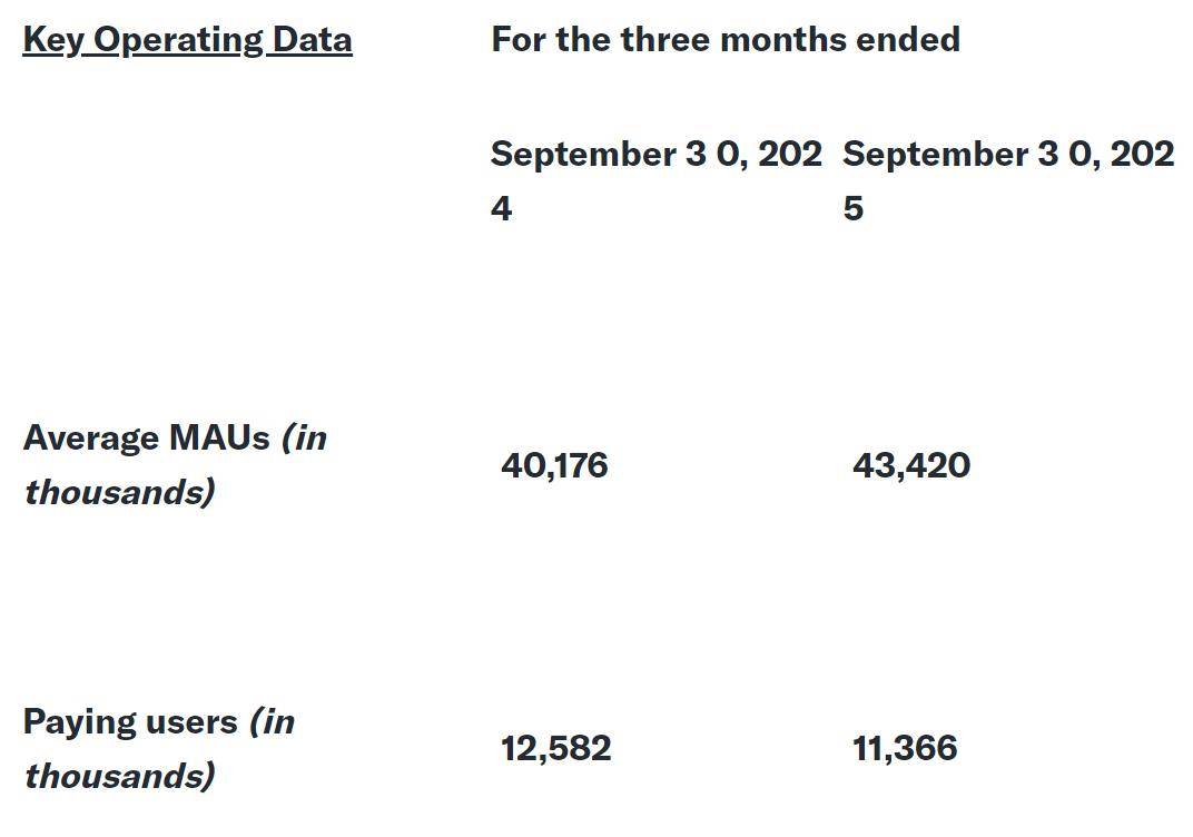 Yalla在2025年第三季平均月活跃用户数4340万,较上年同期的4020万增长8.1%,但平台付费用户数为1140万,较上年同期的1260万下降9.7%。