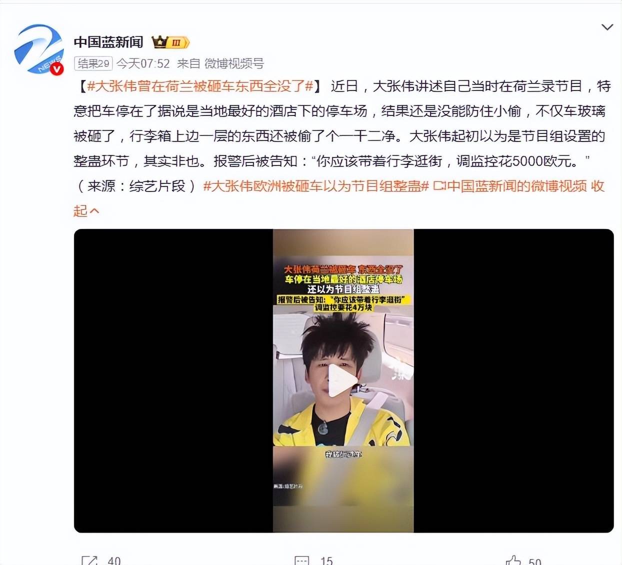 原创 大张伟欧洲被砸车以为节目组整蛊,调监控要花5000欧元