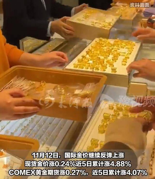 11月12日,国际金价继续反弹上涨,现货金价涨0.24%,近5日累计涨4.88%;COMEX黄金期货涨0.27%,近5日累计涨4.07%。