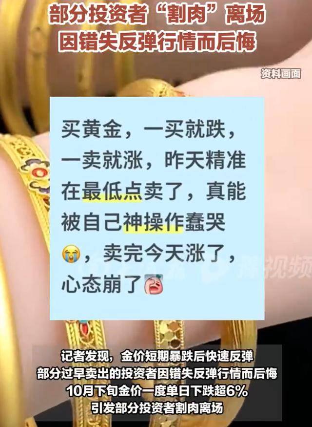 记者发现,金价短期暴跌后快速反弹,部分过早卖出的投资者因错失反弹行情而后悔。10月下旬金价一度单日下跌超6%,引发部分投资者割肉离场,但至11月11日,国际金价已明显回升,出现“跌后反弹”走势,导致一些人后悔卖出过早“一买就跌一卖就涨”“买在最高点卖在最低点”。