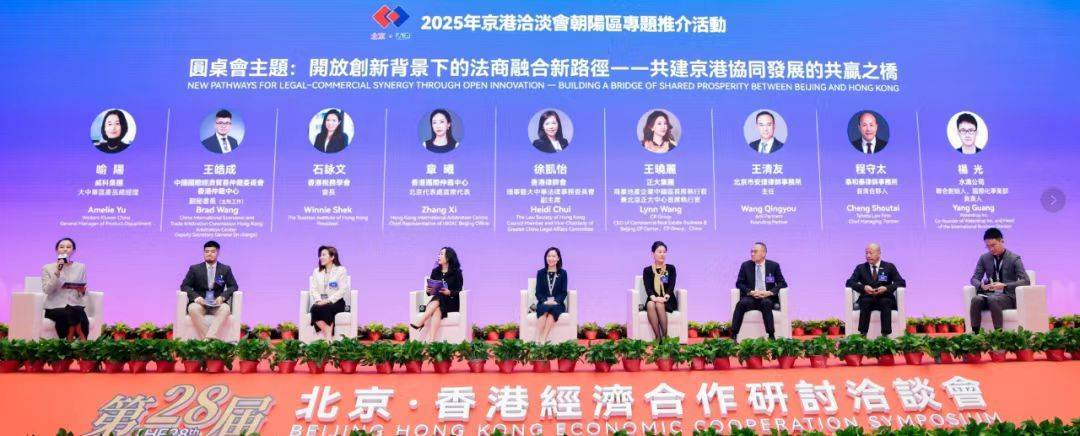 在企业分享环节,太古地产、奇梦岛集团结合企业在朝阳的发展实践,分享了借助京港平台实现业务拓展与互利共赢的路径经验。圆桌对话环节以“开放创新背景下的法商融合新路径”为主题,邀请京港两地专家围绕法律与合规体系创新、金融资本对接、产业生态构建等议题展开深度交流,为推动京港协同发展探索新机制、新范式。