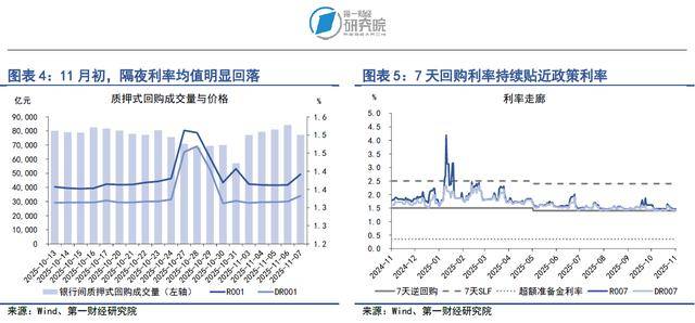 银行与非银之间的流动性差异始终处于低位,表明整个银行间市场的流动性稳定充裕。在11月3日至11月7日当周,R007与DR007之间的平均差值大约为3.84BP。通常而言,当R007与DR007差值在10BP以下时,我们认为银行与非银之间的流动性差异不显著。
