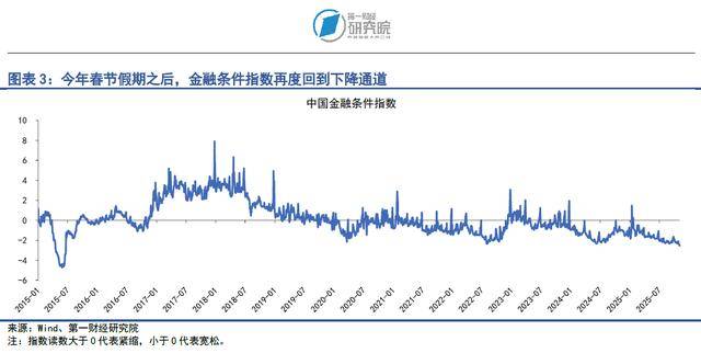 在2025年11月3日至11月7日当周,第一财经研究院中国金融条件日度指数均值为-2.49,与前一周相比,指数下降0.34。从年内看,指数下降1.08。