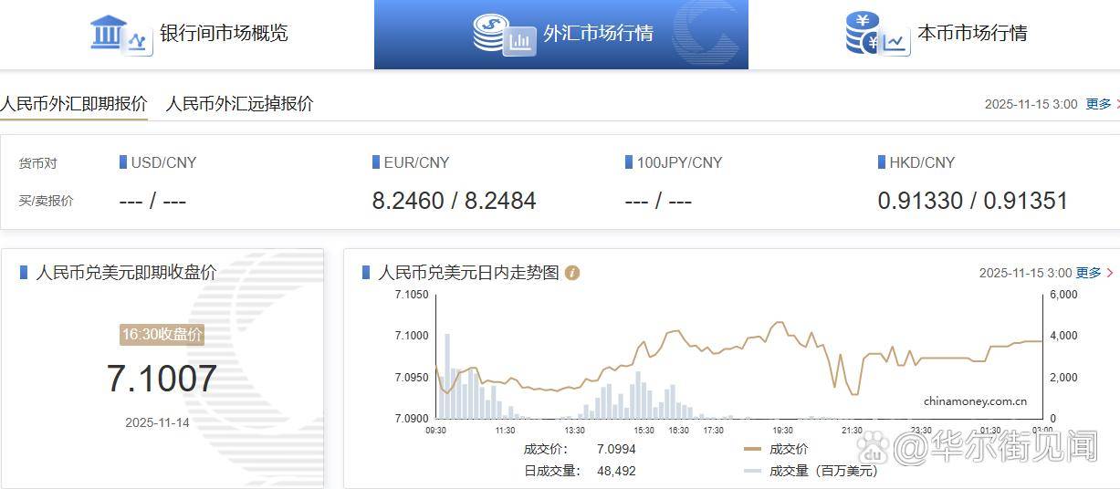 在岸人民币兑美元(CNY)北京时间03:00收报7.0994元,较周四夜盘收盘跌29点。成交量484.92亿美元。