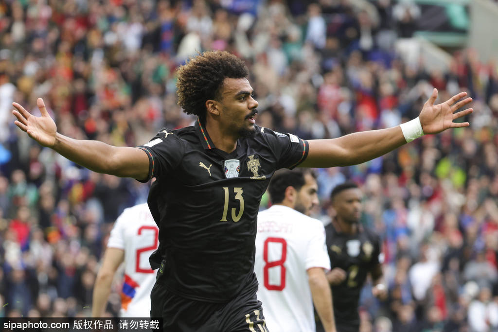 第41分钟,若昂-内维斯禁区弧顶任意球射门直挂右上角,葡萄牙主场4-1领先亚美尼亚。