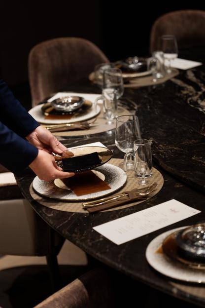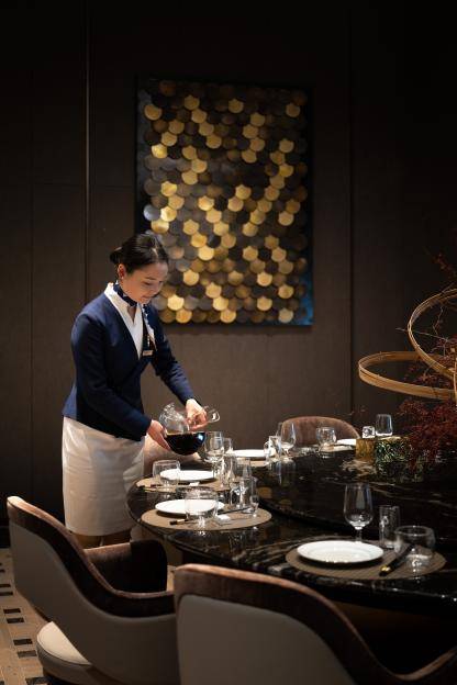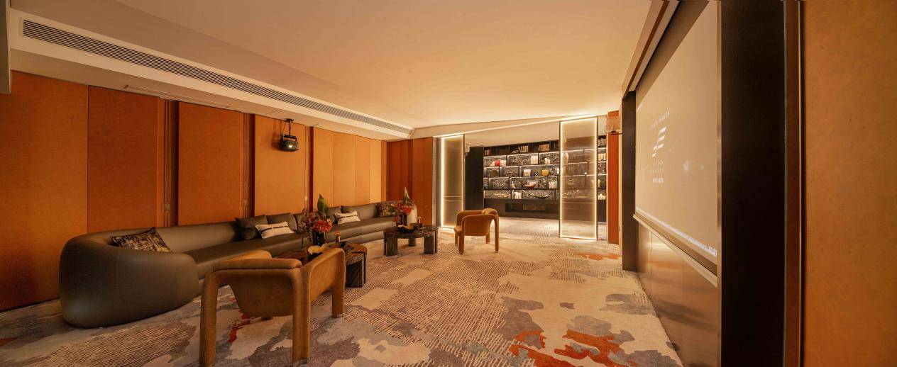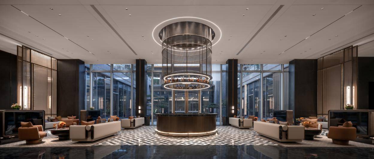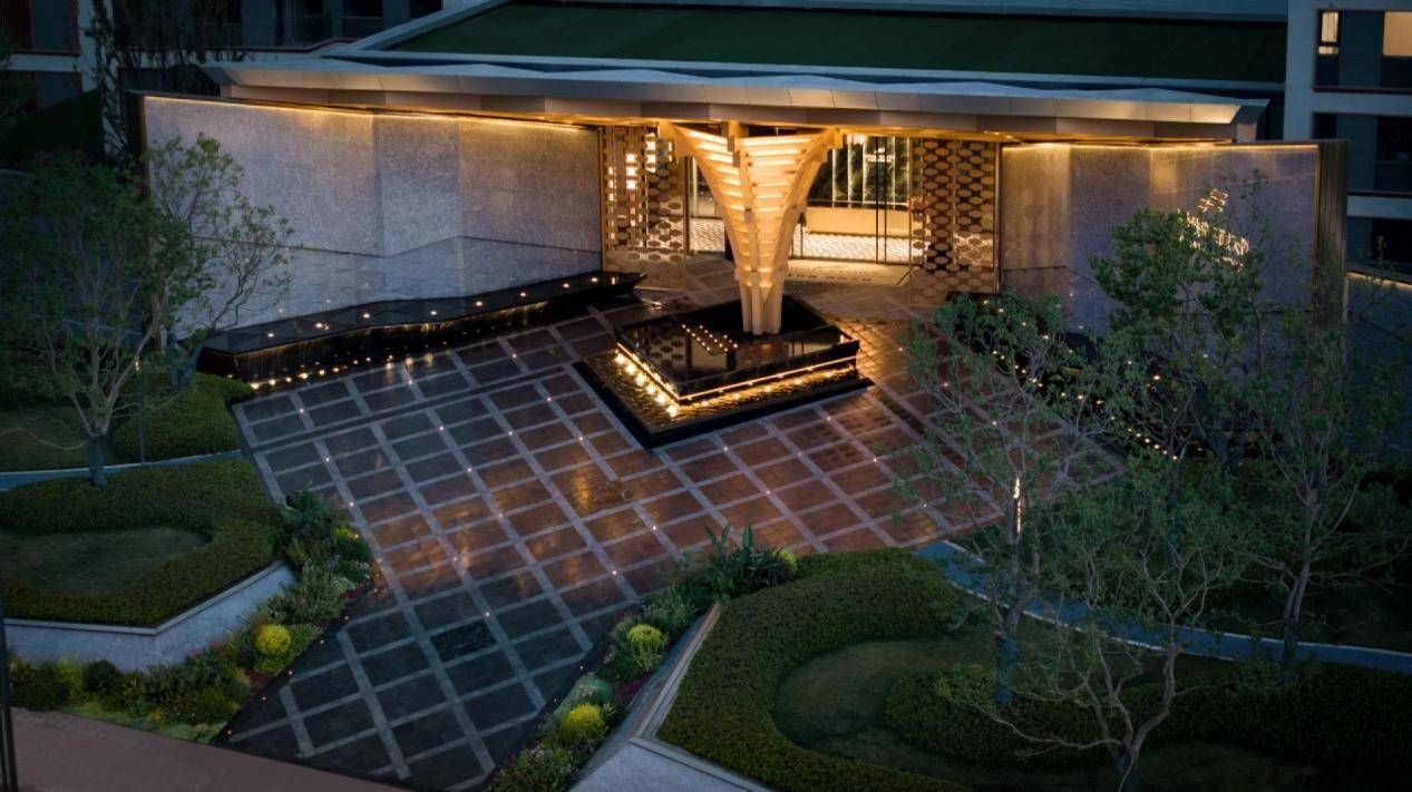 项目的匠心标准贯穿于每个细节:入口迎归“永恒之树”传递门楣之光,酒店环岛式大堂营造归家仪式感;园区内栽植众多臻稀树种,精心构筑四季常景的园林画卷;细节处融入了非遗琉璃屏风、水刀拼花等多重工艺,于不经意间流露文化底蕴与匠心精神。
