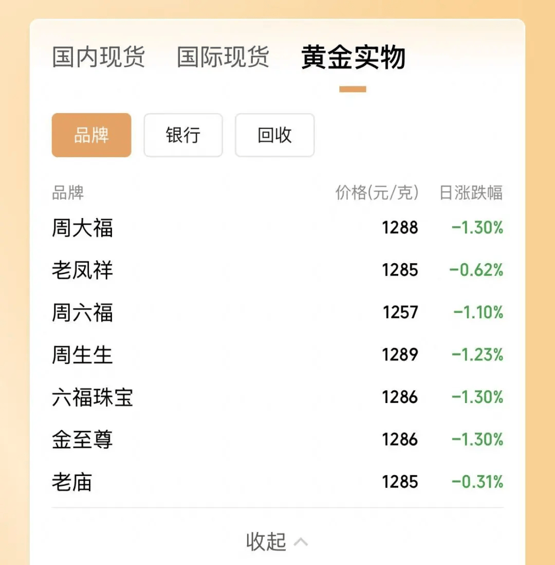 国内品牌金饰价格也有所下调