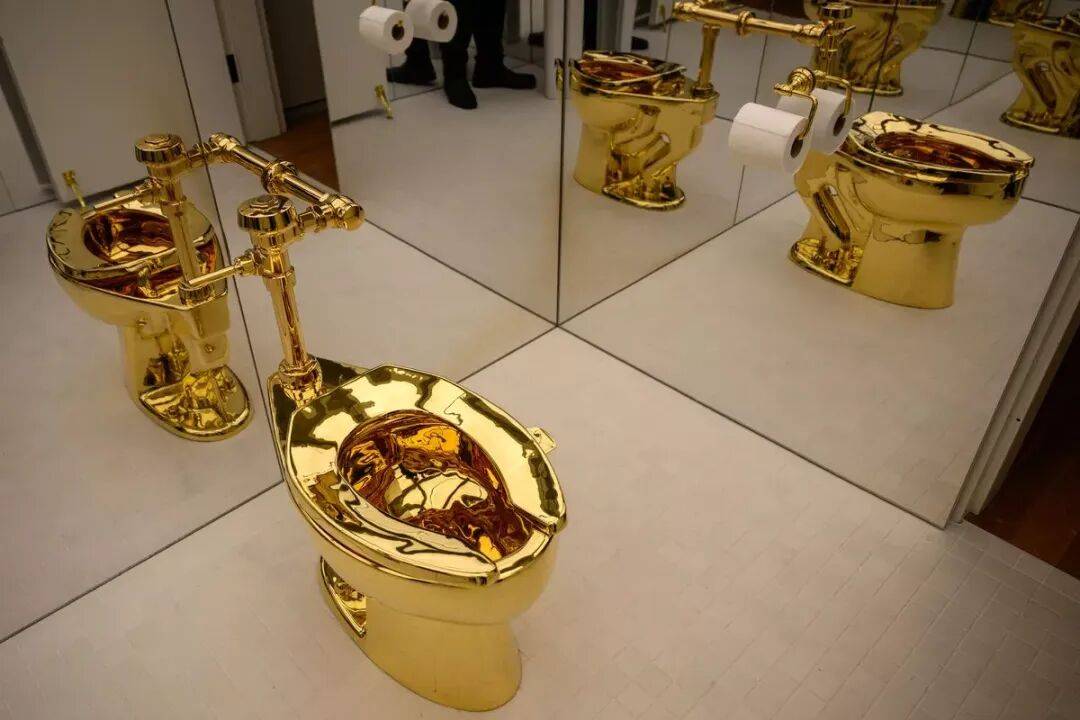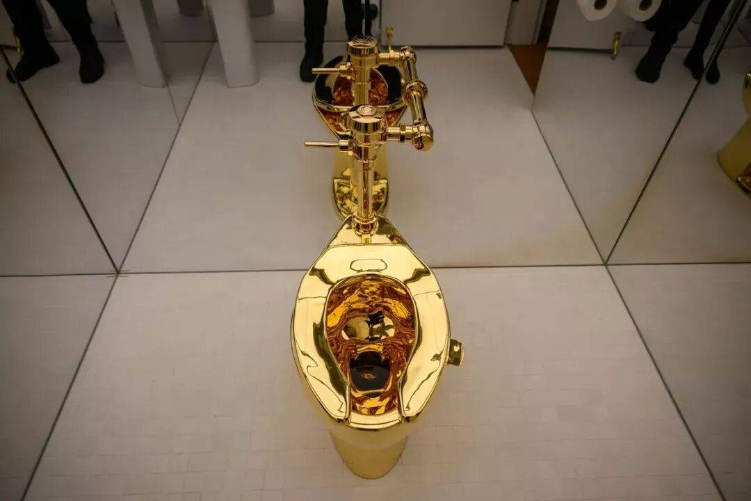这个完全可使用的马桶由超过100公斤的18K黄金制成,最初于2016年安装在纽约古根海姆博物馆的公共洗手间,据称接待过超过10万名访客,之后被转移到英国牛津郡的布伦海姆宫。