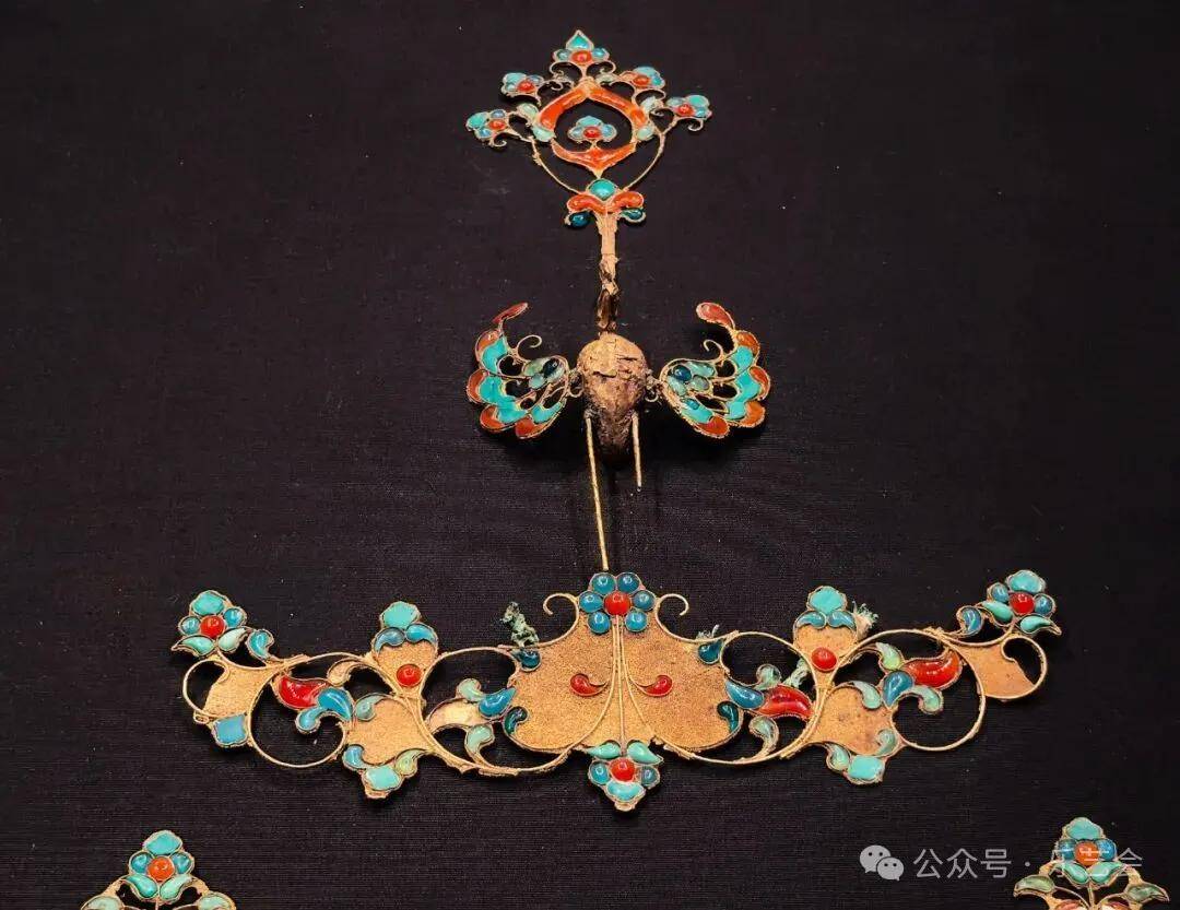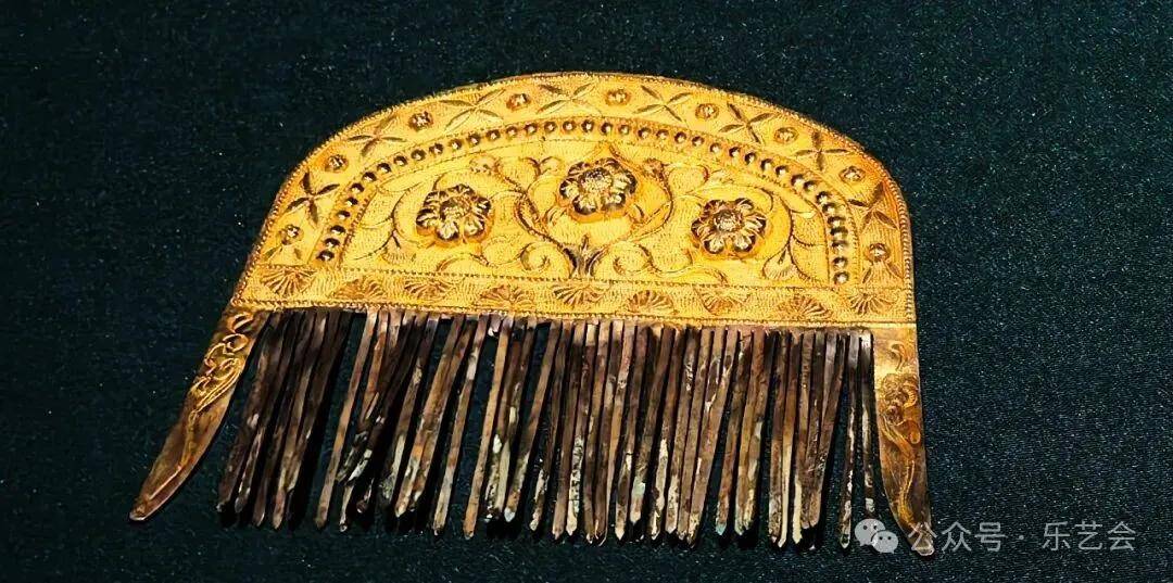展品类型涵盖首饰、腰带饰件、车马饰、礼仪用具等,造型各异、工艺精湛。其中,公元前15世纪-13世纪的喇叭口金饰,见证了黄金工艺从欧亚大陆西端向东传的轨迹;战国至汉代的卷曲动物纹饰牌,呈现了草原游牧民族独特的“动物纹”艺术风格;唐代金饰则展现了丝绸之路多元文化交融的华丽风采;而辽宋时期的金带钩与头饰,则体现了中原与北方草原文化的深度融合。此外,展览还特别关注金器工艺技术的发展。